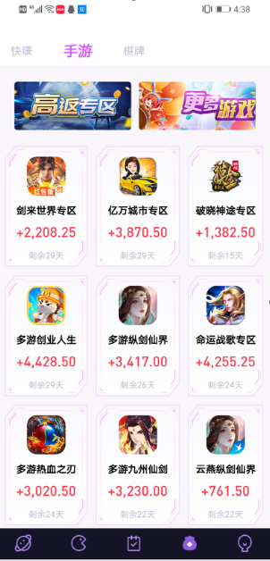 新的活动中游戏试玩趣钻奖励增加20%的平台奖励。玩游戏赚钱每款游戏最少可以赚几十元的趣赚奖励。做任务赚钱是赚钱中的快赚任务有上新、高额、免审的三种任务,按照自己的兴趣选择游戏完成后领取趣钻奖励就可以了,都是一些小任务,三分钟就能完成,趣钻奖励都是几块钱的。