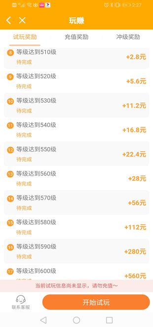 平台中的游戏试玩大概都是一个月到三个月之间,基本上我每次玩的游戏都会玩一个礼拜左右,这款游戏中一共能赚几百元奖励。再加上玩游戏的时候还能获得一些平台活动中的奖励,所以平均下来我每天赚100元左右。