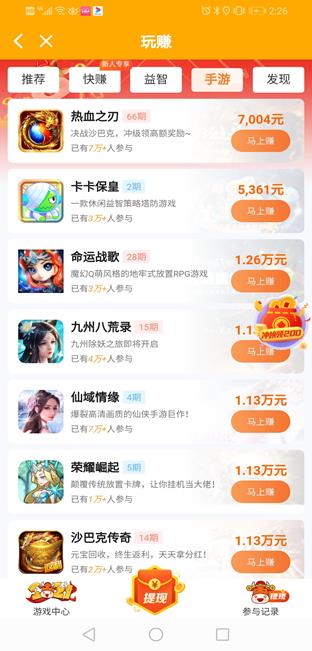 在平台中玩游戏是我玩过赚钱最快的一个平台了。在新用户专享的“快赚”中玩游戏,我就只花了2分钟的时间就赚钱了。