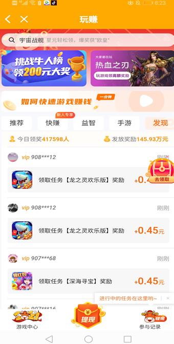 在平台中也包括一些平台任务或者活动,每天一进入平台提醒最多的就是每日任务领现金红包的活动了,每日任务实际上都特别简单,你可以每天尽量都完成了。反正也同样是玩游戏能多赚点奖励也是不错的。