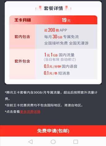 以前我也听说过但是从来也没办理过,因为营业厅办理的套餐中流量多的,套餐都挺贵的,我觉得划不来。但是我办理了腾讯大王卡还是线上免费办理的,每个月才19元的月租费,套餐里面每月包含30个G的全国专属流量的,还有近200款的专属app都是免流量用的。