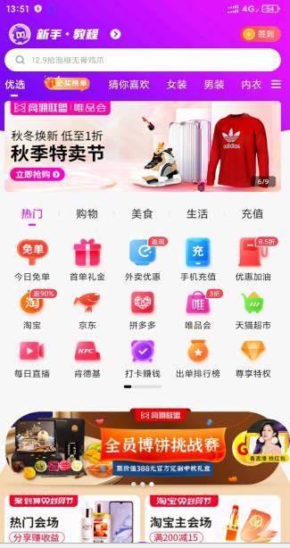 在这款软件中领取到的优惠券没有上述那么多的使用条件,即领即用,与我们平时使用的购物软件还有一点不一样,那就是这款软件中我们可以选择任意一家电商平台来购物,首页都可以找到相对应的入口,直接点击进入就可以在对应的平台中买自己需要的商品,方便了不少。