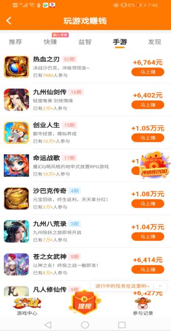 比如说游戏角色升到五级奖励多少钱,升到十级再奖励多少钱,或者在游戏里面赚到五万金币,角色战斗力达到多少等等,所有的赚钱来源都是一个个的小任务,只要在游戏中完成任务就能自动领取对应的现金奖励。