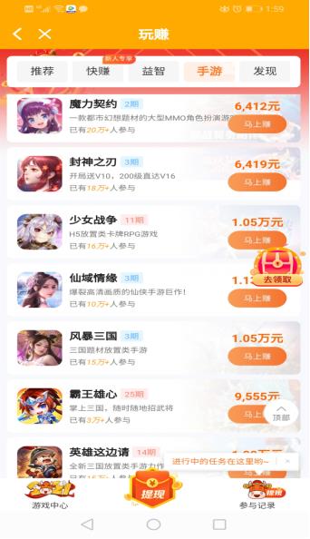 玩游戏我有点眼花缭乱好几个游戏列表,每款游戏后面都记录着几千、几万元,没错这是一款游戏能赚到的最高奖励。
