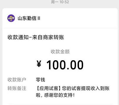 苹果手机用户在应用试客App上做试玩,首选应用类试玩,这些任务基本上每个佣金都是1元左右,虽然看起来低,但是任务做起来没什么难度,两三分钟就能完成一个,所有类似任务的流程都一样,简直太适合批量化了。其次就是注册类任务,完成简单的注册就行,很多注册任务的奖励非常高。应用试客App收入需要达到10元才能申请提现,每次都是秒打款、秒到账。
