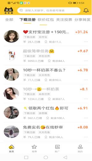 每天更新奖励高的任务,基本上都是注册下载的任务,三五分钟就能完成一个任务。做任务的时候按照任务介绍里面的教程步骤一一截图提交就行了。