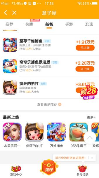 微信快速赚100块的方法: 玩着玩着就能挣到100块,这个问题最近已经刷屏各大论坛和贴吧,无数人都在寻找这个办法,恰巧今天我推荐的软件就是它,所以我和大家细细的讲解一下,盒子屋,一个最近悄悄流行在各大网站榜首的游戏软件,说是一个游戏软件,不如说他是一个理财软件,为什么这么说呢!