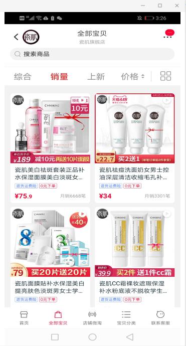 说到瓷肌,我想各位护肤小主们都记得前几年微商代理很火的产品瓷肌,瓷肌能走到今天全靠产品实力,吸引到一大批的粉丝青睐。淘宝天猫商城的瓷肌旗舰店已经有9年的时间,粉丝量达到180多万,客户综合体验四星,店铺好评率100%。