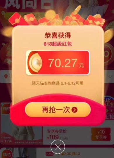 昨天3次机会,领取到了70.27元,给自己买了件衣服。
