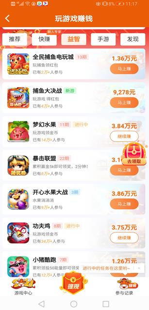手机试玩赚钱的游戏在平台中有网友推荐的榜单游戏,热度排名靠前的游戏有梦幻水果、暴击联盟、开心水果大战、功夫鸡、炸弹别惹我等的游戏。如果你等下要开始试玩游戏赚钱了,可以先从我推荐的这几款爆款热度游戏中选择来玩,每天一百就从“当赚”开始赚钱吧!