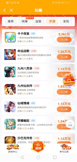 游戏数量多,选择性也大,玩一款喜欢的游戏都会玩家来说太重要了。在平台中玩游戏赚钱我觉得新手或者老司机都可以来试玩。新手比其它游戏平台中多了新用户的试玩游戏,也就是在“快赚”中可以玩游戏赚新手奖励,大大的提高了用户对游戏任务和奖励的兴趣。