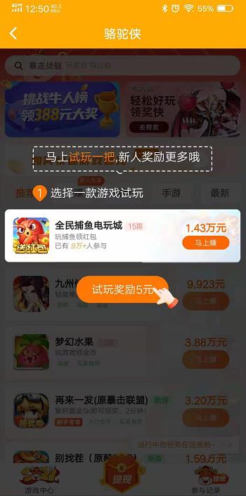 骆驼侠这款应用软件还是挺适合广大的游戏爱好者的,平常闲下来没事儿的时候就拿出手机玩一玩,不仅可以娱乐还可以有零花钱赚,可以说是一举两得。随时玩随时赚,还可以随时退出,相比于其他的一些赚钱方法要好上不少。