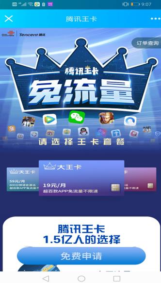 如果你想用流量特别多的那种卡,你可以选择办一张腾讯大王卡,每月只要19块钱就包含40GB的腾讯专属全国流量,不管你玩什么应用都够用了。如果不够用也别担心,超过套餐以外的流量也超级便宜,1元就可以用800兆流量,还能免费升级到1元1GB流量。腾讯大王卡的套餐说实话性价比真的超高,还能申请5G网速的腾讯大王卡,体验和5G更快的网速。