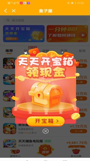 什么游戏一天可以赚50?玩游戏赚钱是很多年轻人每晚下班必做的事了,一边娱乐一边赚钱。众多手机游戏软件中今年最赚钱的就是盒子屋这款软件。盒子屋中每天都有平台奖励,一进入游戏就能参加天天开宝箱活动。